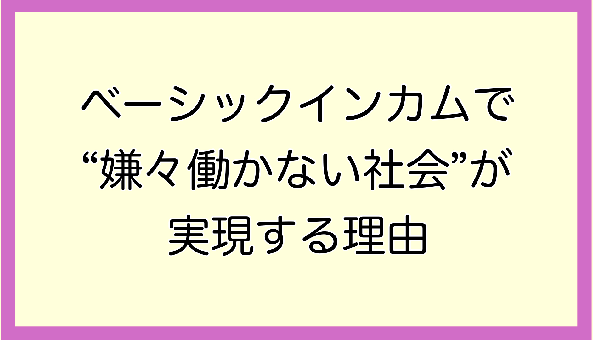 だから僕はベーシックインカムの導入で「嫌々働かない」楽しく働ける社会が実現されると確信できると言えるのです。