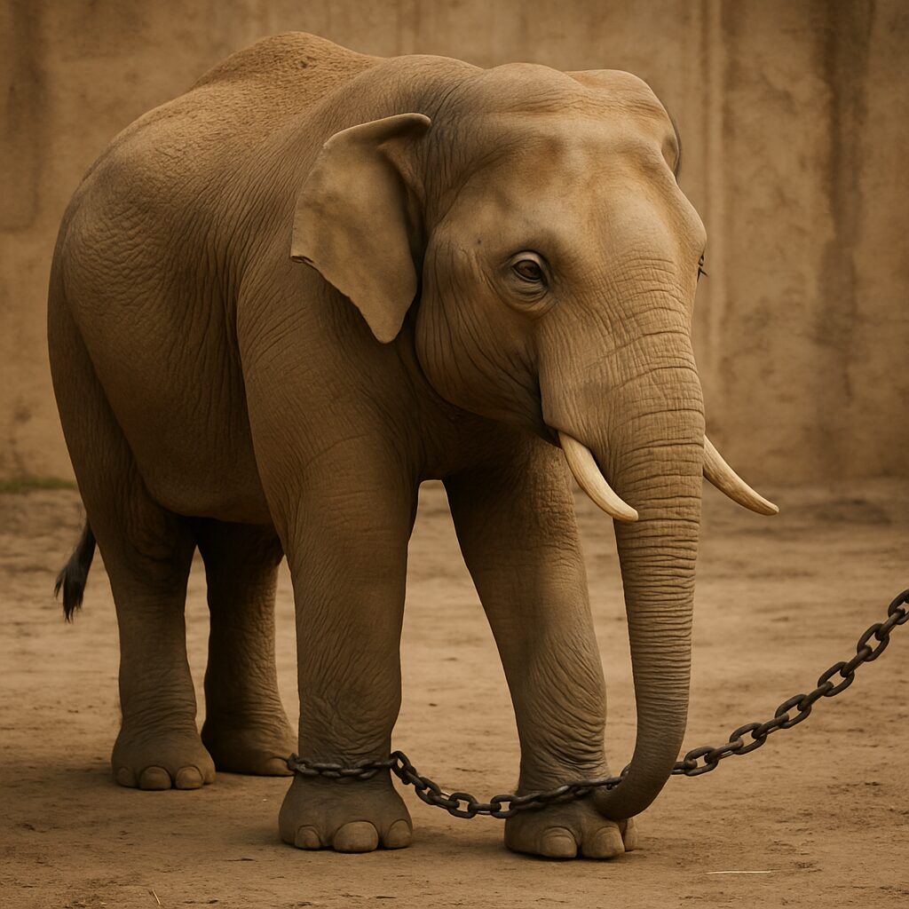 「あんなに大きな象なら、鎖なんて簡単に引きちぎれるはずなのに…なぜ逃げ出そうとしないんだろう?」
