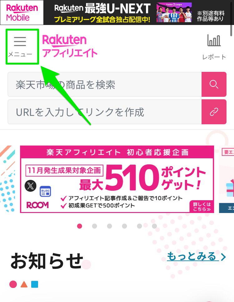 登録が完了したら、楽天アフィリエイトの「リンク作成」機能で紹介リンクを発行します。