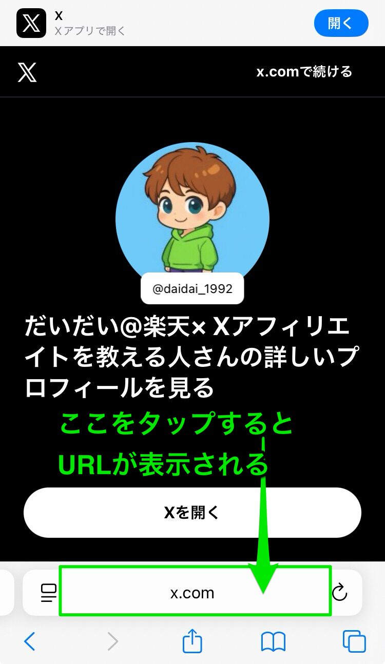 1位:Xのプロフィール(例:https://x.com/daidai_xaffiliate)